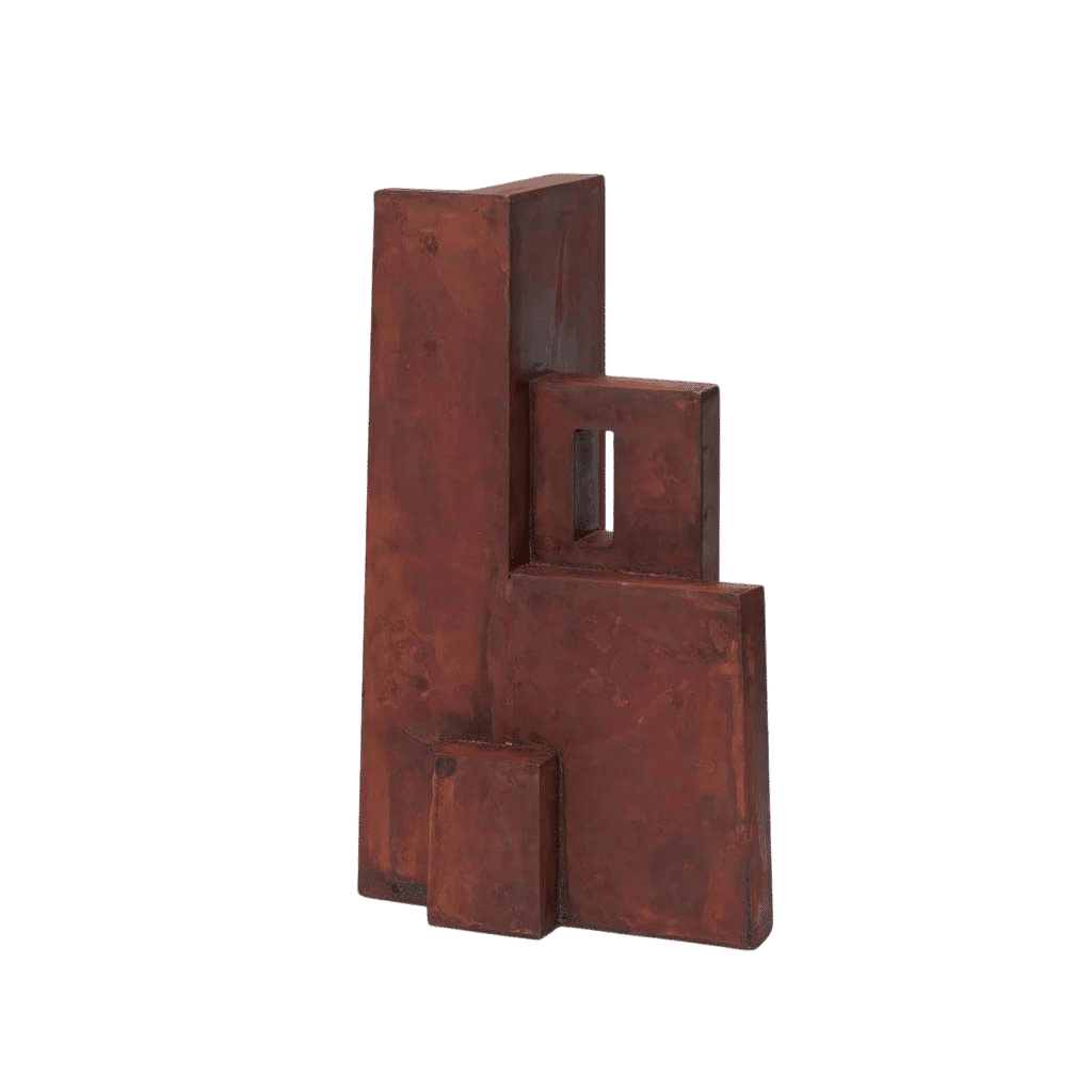 The Aperture Sculpture, a testament to minimalist elegance, is a distinctive decor piece that seamlessly blends art with architectural influence. Its name, 'Aperture,' signifies an opening, a subtle yet intriguing window that forms the heart of the sculpture. Crafted from painted metal, it has a vibrant and captivating tactile quality, offering a unique mix of texture and hue. Its design, minimal yet memorable, not only enhances the aesthetics of a space but also evokes a tranquil and composed atmosphere.