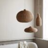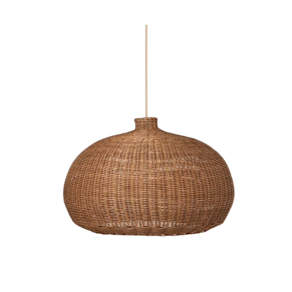 This grand, domed lampshade is braided by hand from rattan and will provide a lovely and natural light source in a room. Regardless whether you hang it from the ceiling above your dinner table or use it as a focal point in a corner, the lamp lets small glimpses of light through its natural shade, while the bottom hole gives a more directed downward light.