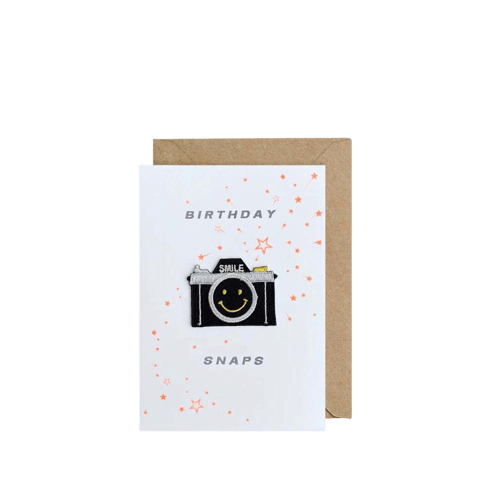 A richly embroidered colourful patch adorns these printed cards. The Camera has an iron-on backing so can be removed from the card and ironed on to a favourite t-shirt, curtains or whatever you like!
