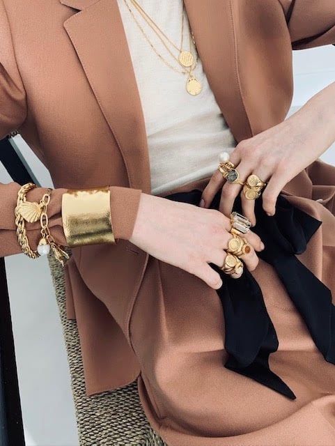 The Chemaine Ring by Mimi et Toi is a handmade piece that balances warmth and character. The smooth 18K gold-plated band holds a polished agate stone, each with its own subtle variation in tone and pattern. Its sculptural shape feels modern yet grounded, adding quiet detail to any look.