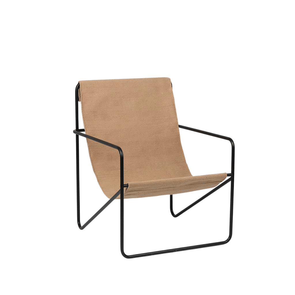 Ferm Living’s Desert lounge chair is a modern version of the classic deck chair, featuring an ergonomic metal frame and a textile seat made from recycled plastic bottles. It’s easy to clean and suitable for outdoor use or indoors.