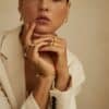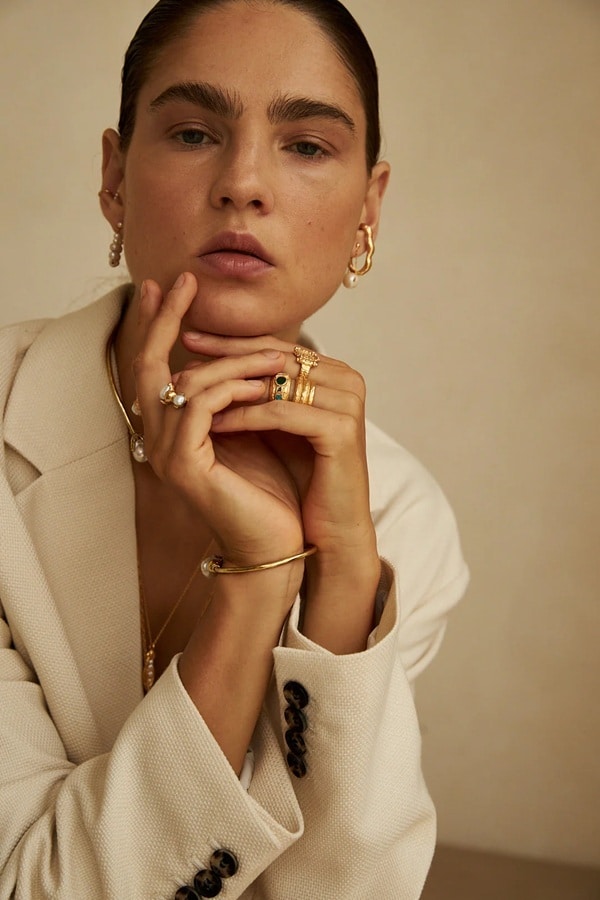 Three rings in one, this hammered band embodies a stylish fusion of playfulness and harmony, featuring interwoven textures that capture light and movement, celebrating individuality and feminine strength.