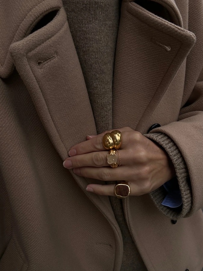 Mimi’s jewelry is designed for everyday wear, with the Orvill ring serving as a bold statement piece ideal for pairing with simple outfits.