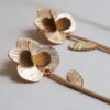 Long earrings in 24 K gold-plated metal that pay tribute to the ephemeral beauty of the wild peony of Mallorca. Stem with movement. Textured design. Butterfly nut closing.
